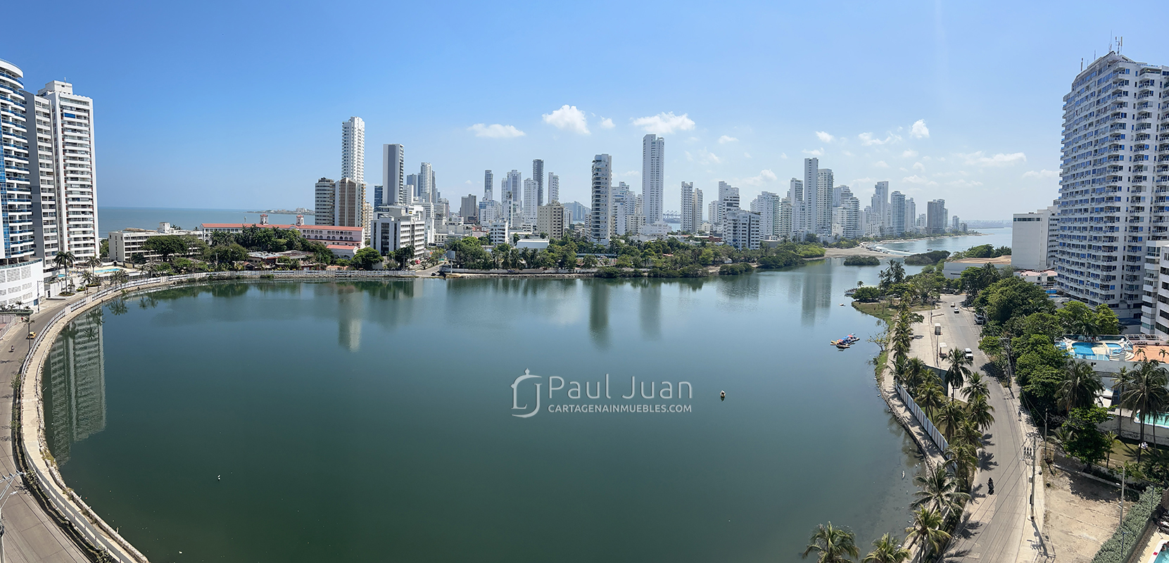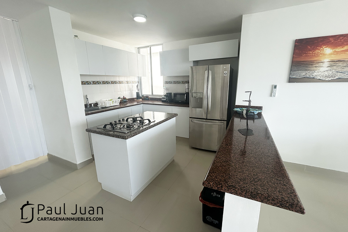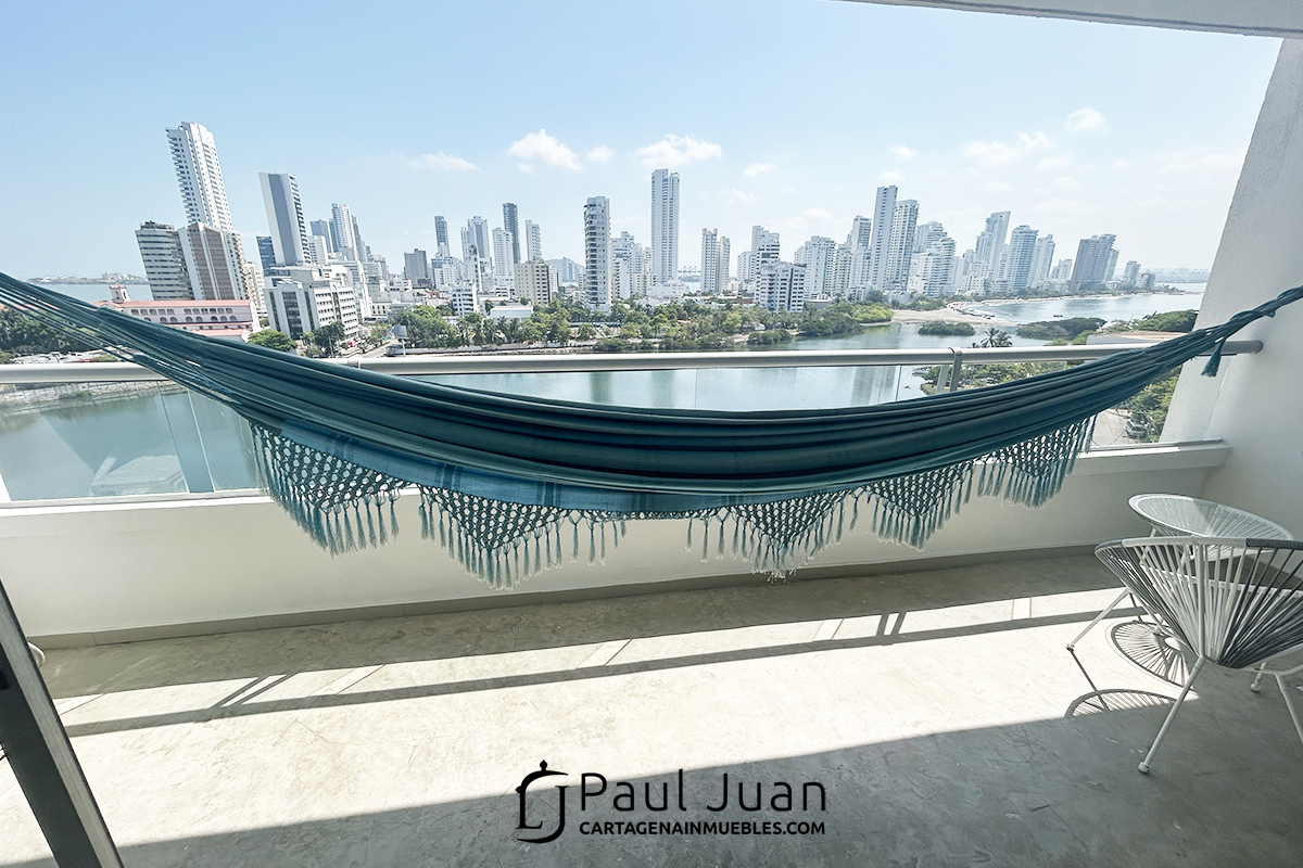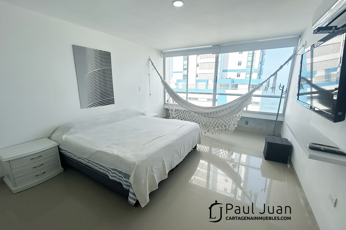 Espacioso apartamento de tres alcobas recien renovado, con espectacular vista al Laguito y Bocagrande. Tiene sala, comedor, tres habitaciones, dos baños y medio, cocina, gran balcón, zona de ropas, cuarto y baño de servicio. Residencial. Se ofrece amoblado.