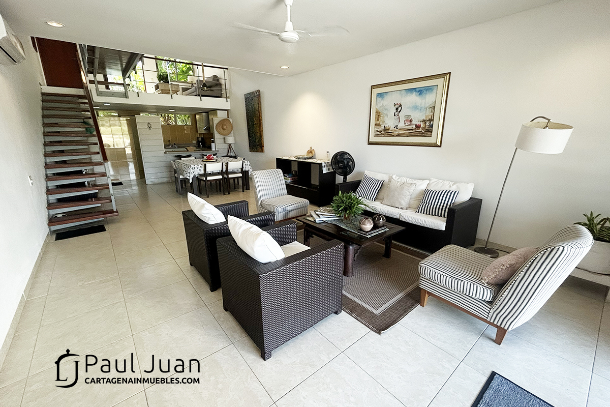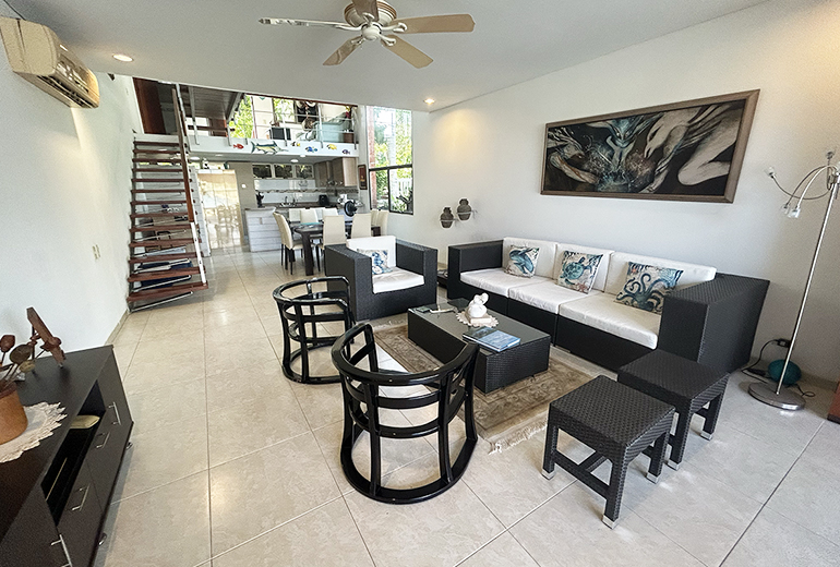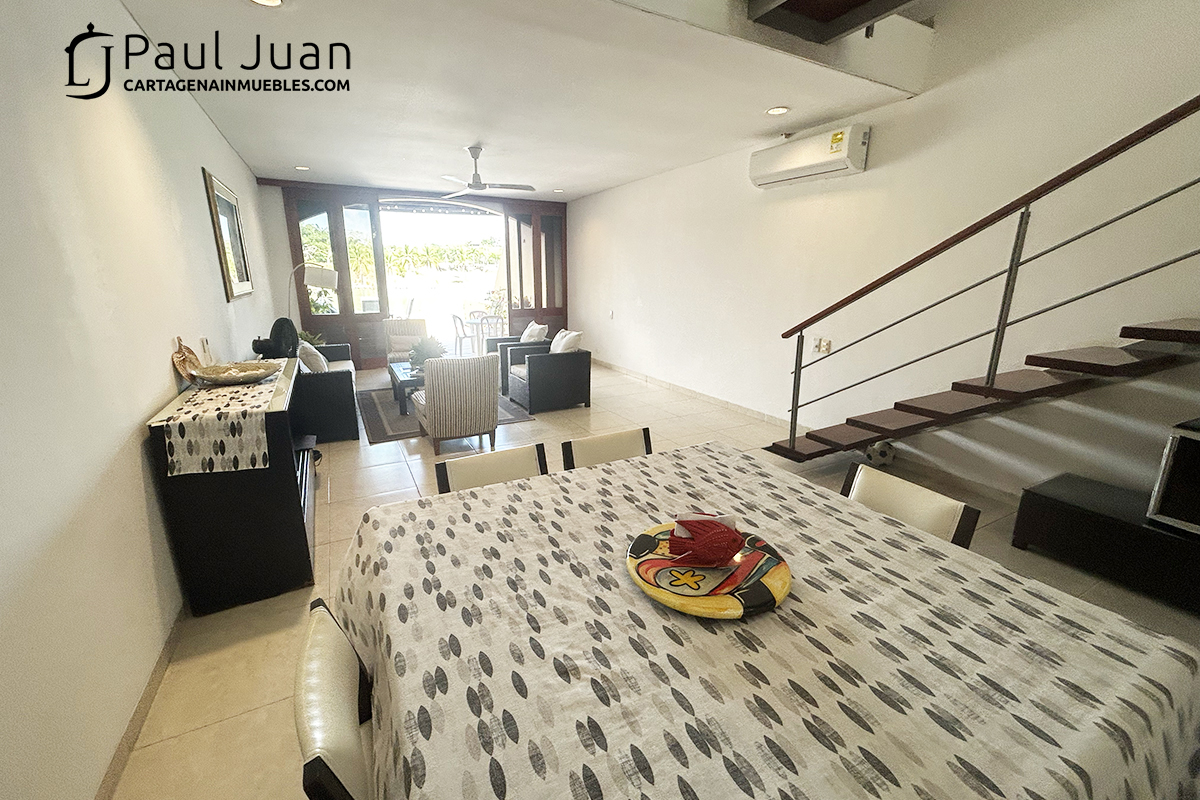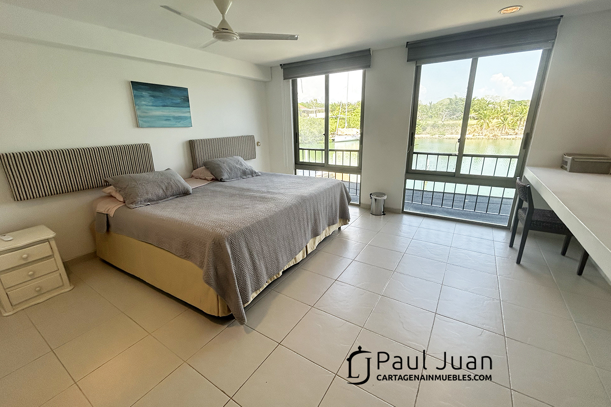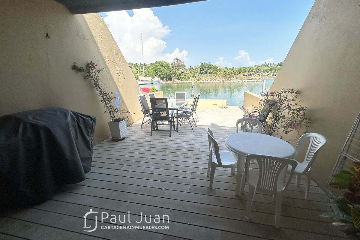 Fabulosa casa náutica con muelle propio, en venta, dentro del Condominio Marina de Barú. Tiene Tres habitaciones, cada una con baño, baño social, sala, comedor, cocina, zona de labores y una gran terraza frente al agua. Se vende amoblada excepto las piezas de arte.