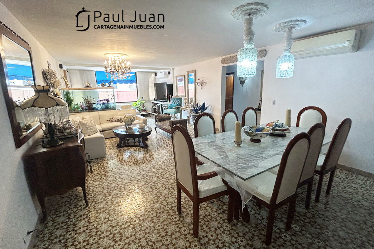Bonito apartamento residencial en VENTA en Castillogrande. Tiene sala, comedor, cocina, tres habitaciones dos baños, zona de labores y cuarto y baño de servicio. Garaje. Muebles no incluidos.