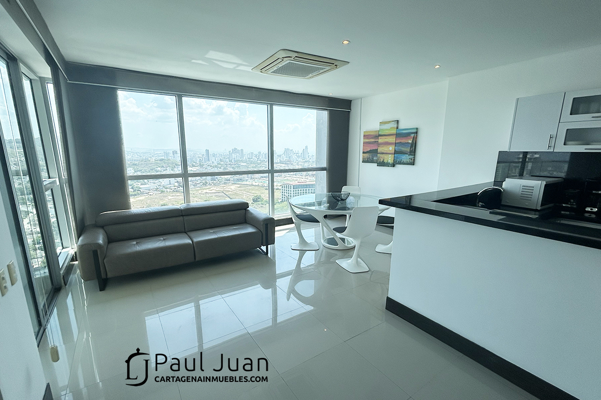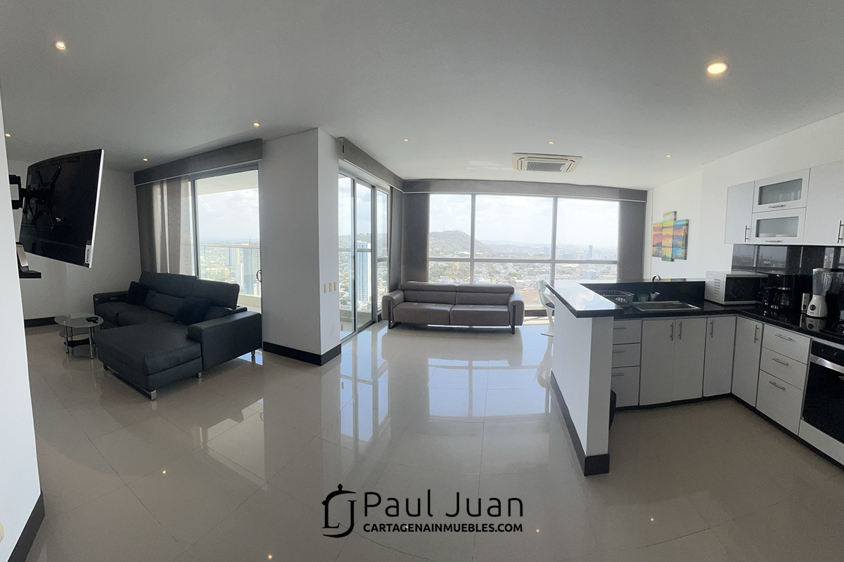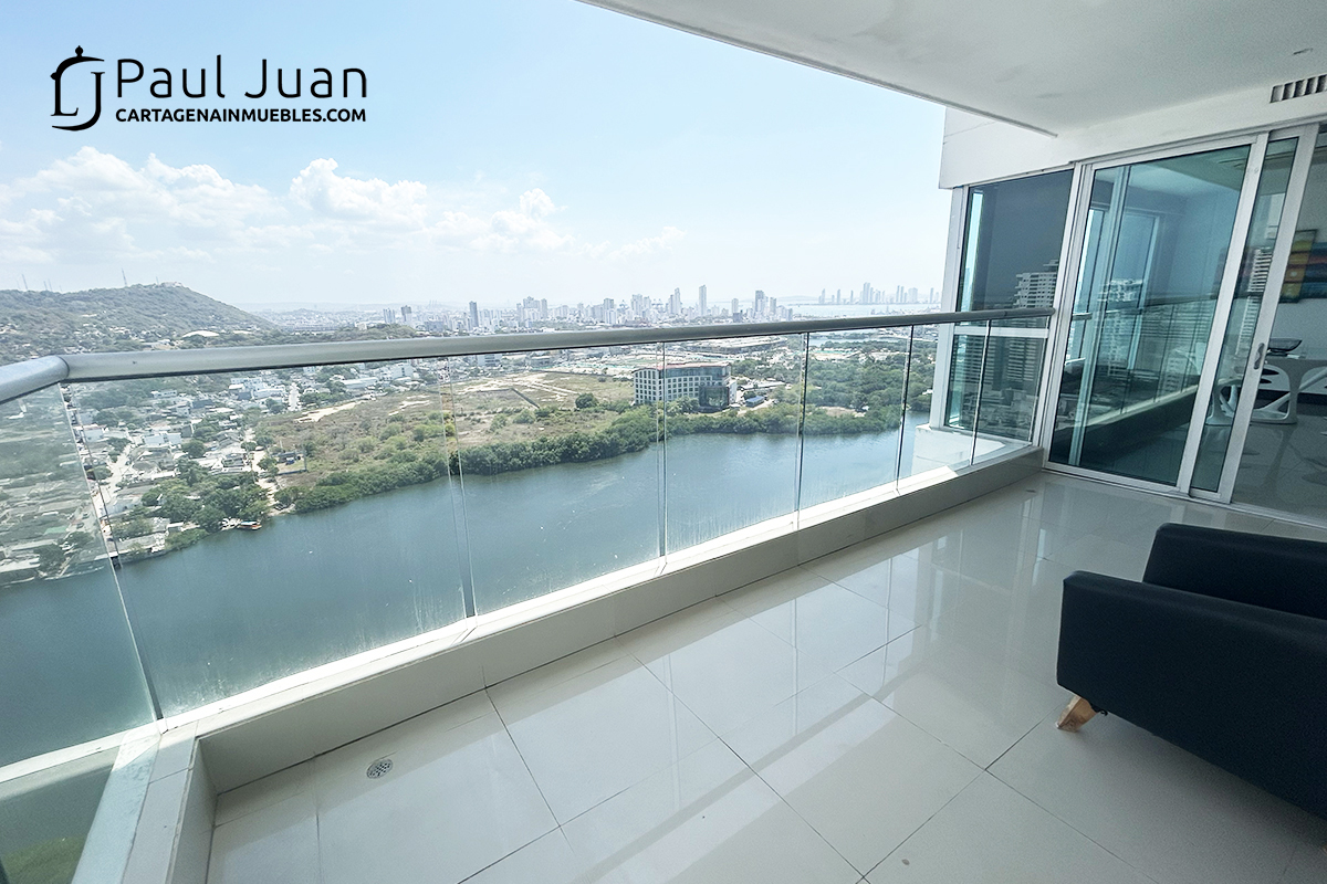Hermoso apartamento residencial con vista espectacular a toda Cartagena. Tiene sala, comedor, cocina abierta, balcón , tres habitaciones, dos baños y medio y zona de ropas. Muebles no incluidos.