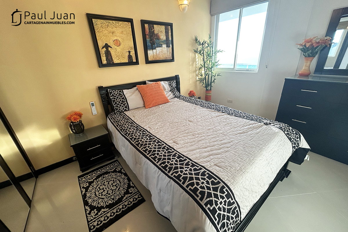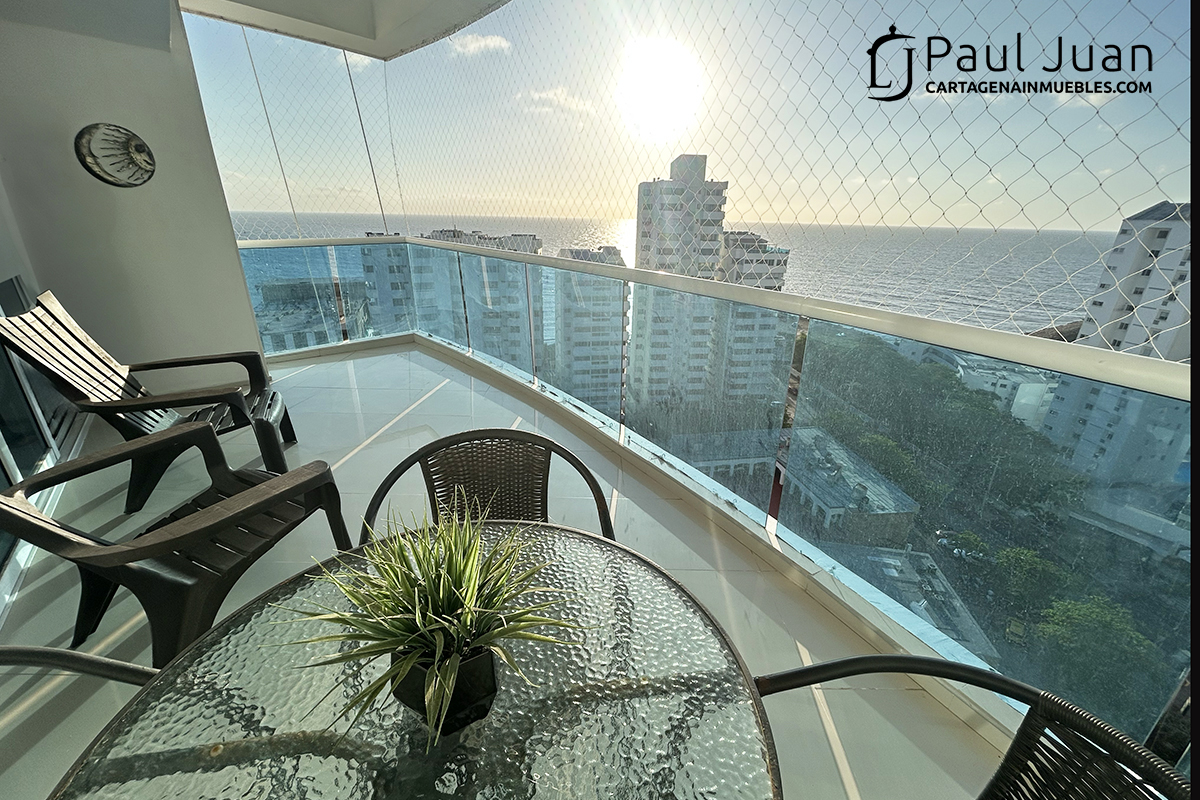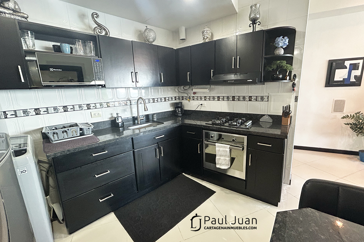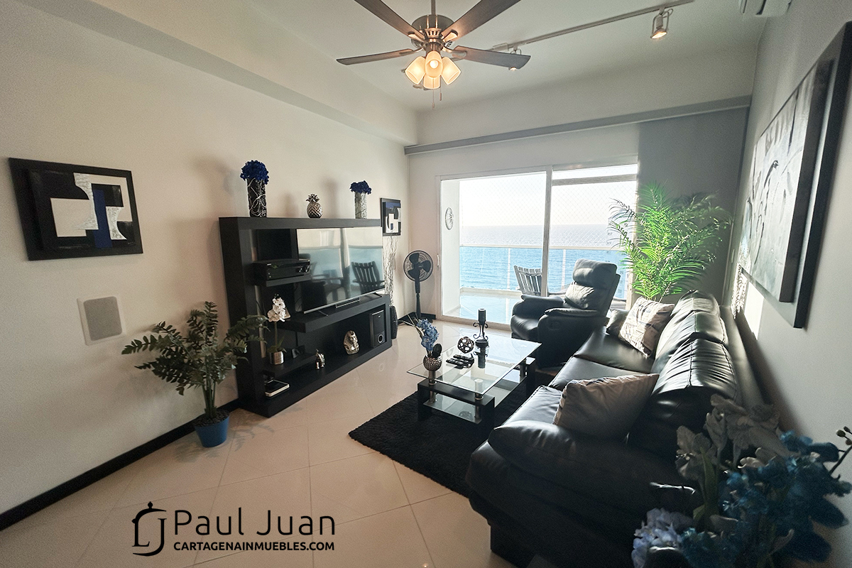Bonito apartamento de dos alcobas y dos baños para uso vacacional en El Laguito. Tiene sala, comedor, cocina, balcón con vista al Mar Caribe. Se vende amoblado. Tiene un garaje.