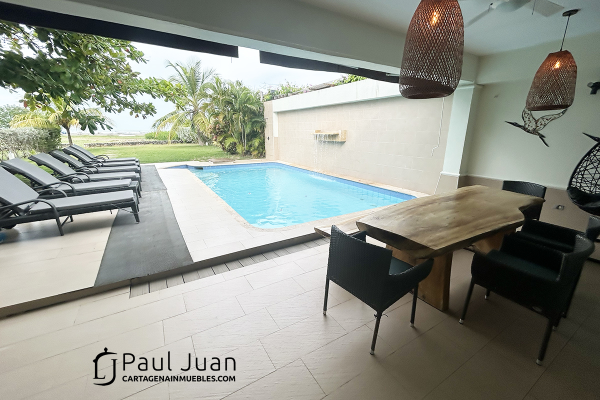 Fabulosa casa vacacional con piscina en VENTA en Arroyo de Piedra. Tiene cinco alcobas, cinco baños, sala, comedor, terraza, cocina y zona de labores. Salida directa a la Playa. Se vende amoblada con todo!